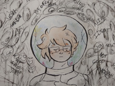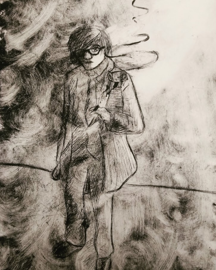 These threepieces were part of a small project I did in my A levels, I wanted to mix both watercolour and etching together as I thought these were two largely contrasting mediums to work with, they ended up being really powerful as the etching juxtaposed the calming nature of the watercolours making the dark emotions of the characters stand out and seem forceful and terrifying.